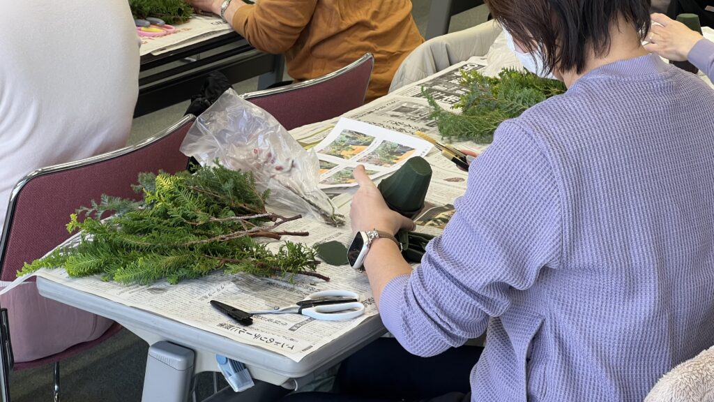枝の向きやボリュームの出し方によって仕上がりに自然と個性が生まれ、ものづくりの楽しさを実感していただける時間となりました。
